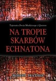 "Zwoje znad Morza Martwego to najstarszy zbiór tektów biblijnych. Najbardziej enigmatyczny z nich, Zwój Miedziany, zawiera – wyryty na arkuszach blachy miedzianej – zakodowany spis miejsc, gdzie przed dwoma tysiącami lata ukryto niewyobrażalne ilości złota i srebra. Został znaleziony w 1952. Od tamtej pory najwięksi archeolodzy, historycy i bibliści usiłowali go odczytać. Teraz nierozwikłana od 50 lat przez naukowców z całego świata zagadka skarbu wartego dzisiaj półtora miliarda dolarów została nareszcie rozwiązana!" Na tropie skarbów Echnatona |